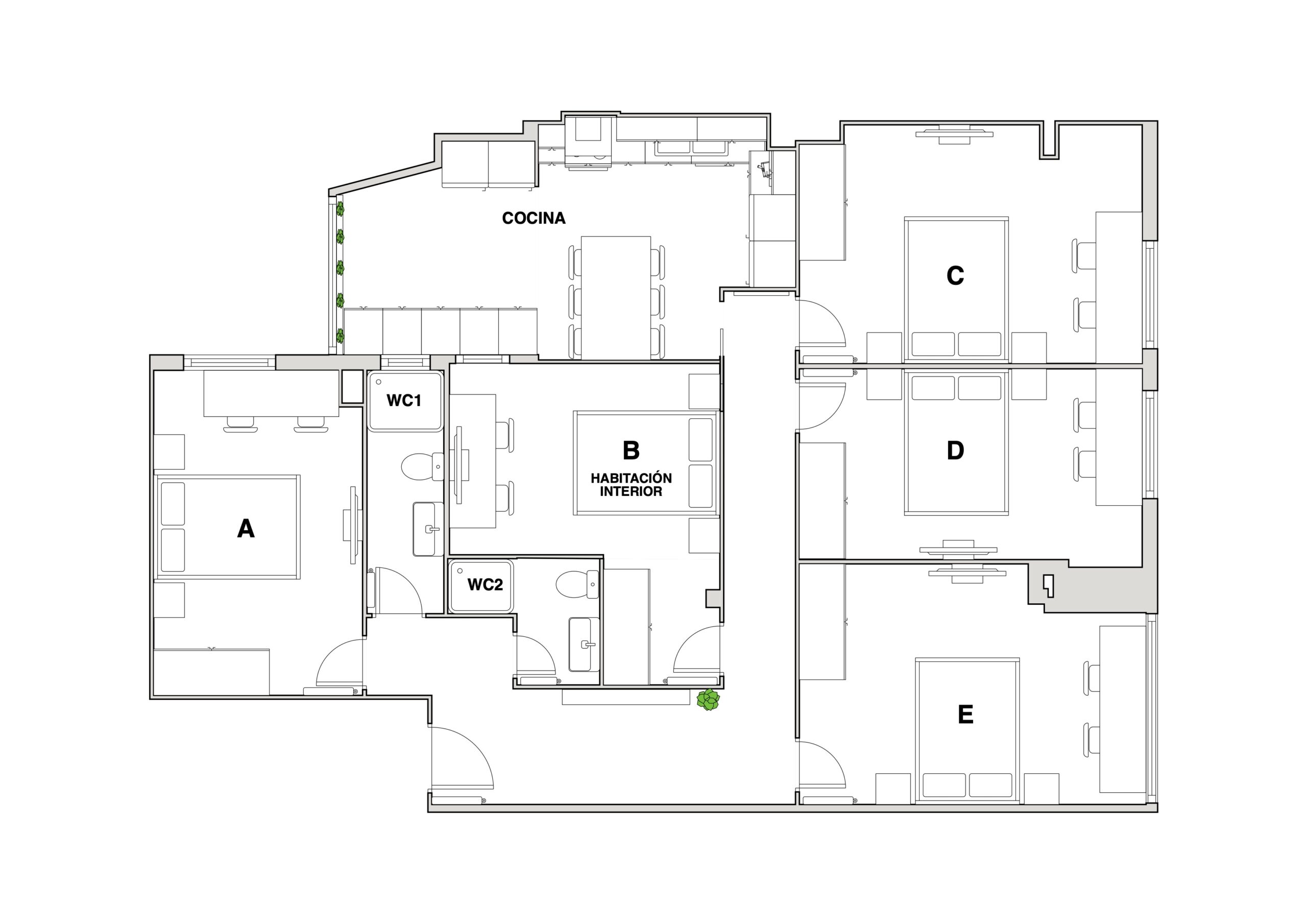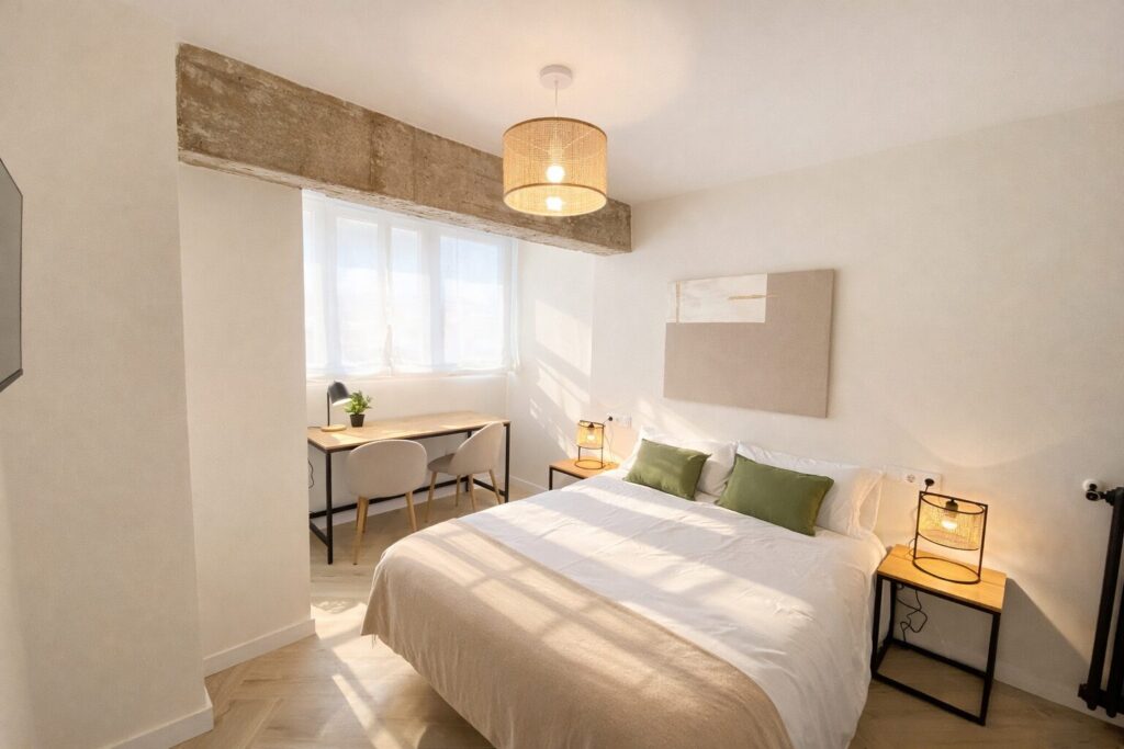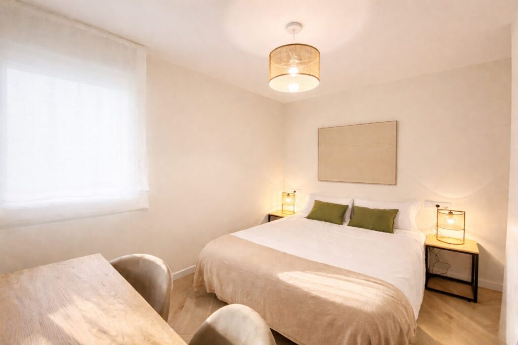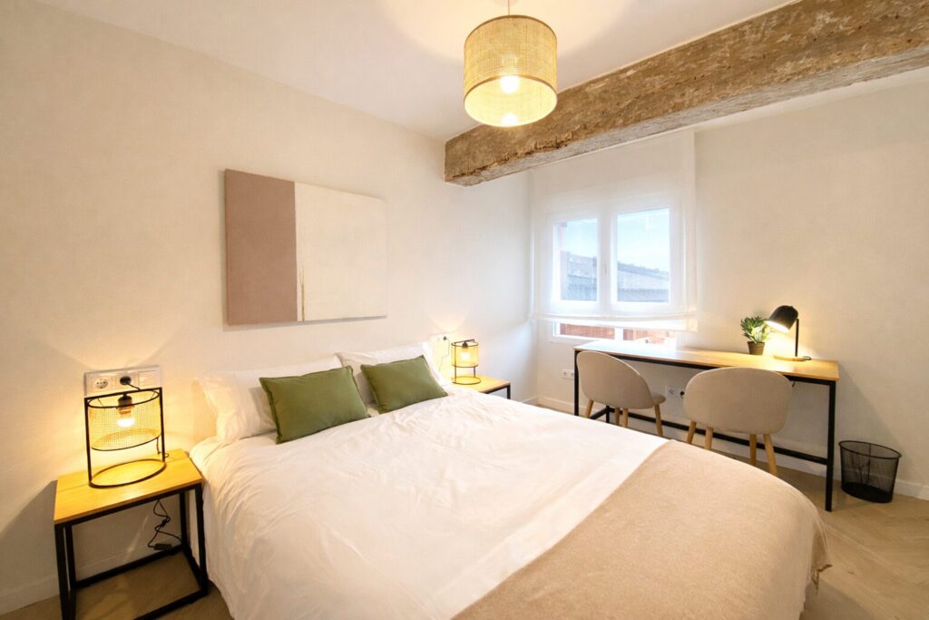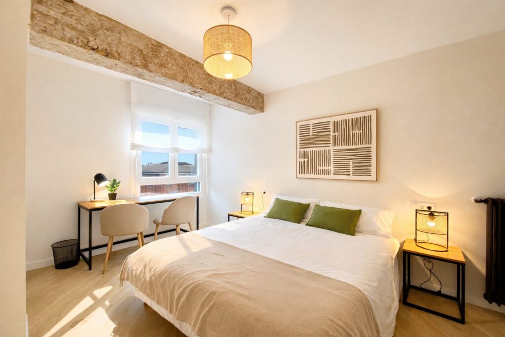 Este piso completamente reformado, de 5 habitaciones dobles y 2 baños, ofrece todas las comodidades: habitaciones espaciosas con armario, TV y cerradura en la puerta, wifi y un diseño moderno, ideal para disfrutar Burgos con total confort.